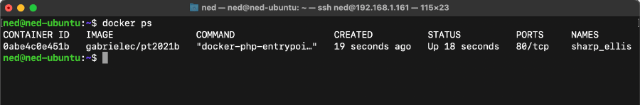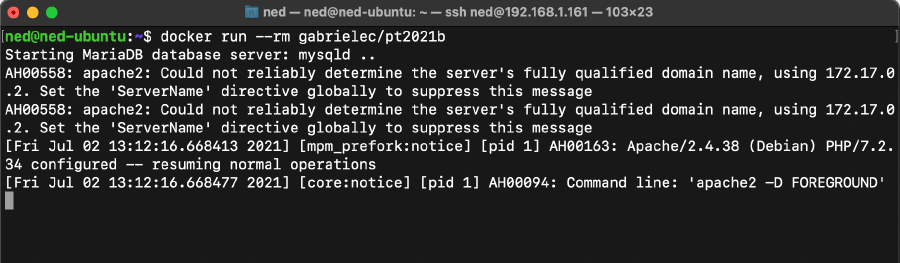 For the purpose of this assessment, the Docker container was run on a dedicated Linux machine and was made available on the subnet with local IP 192.168.1.161, using the command docker run —-rm gabriele/pt2021b: