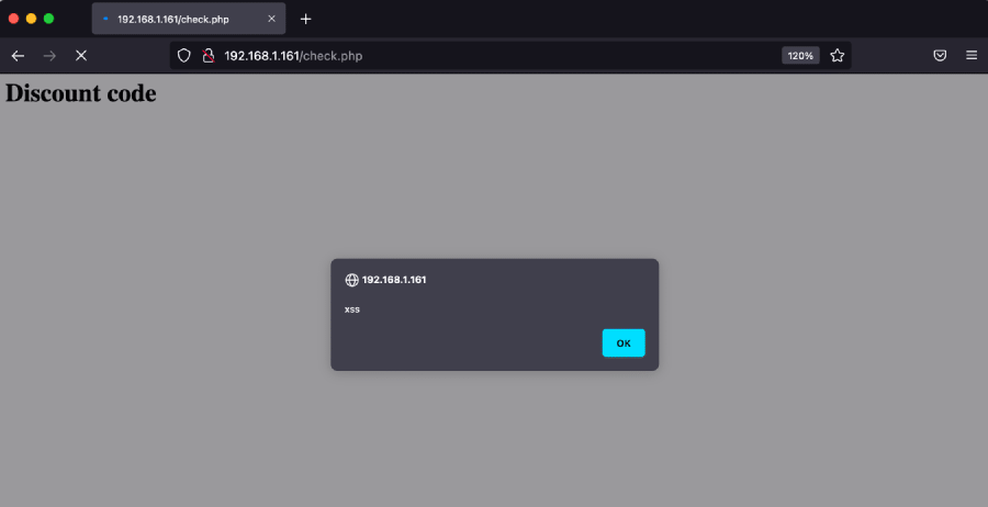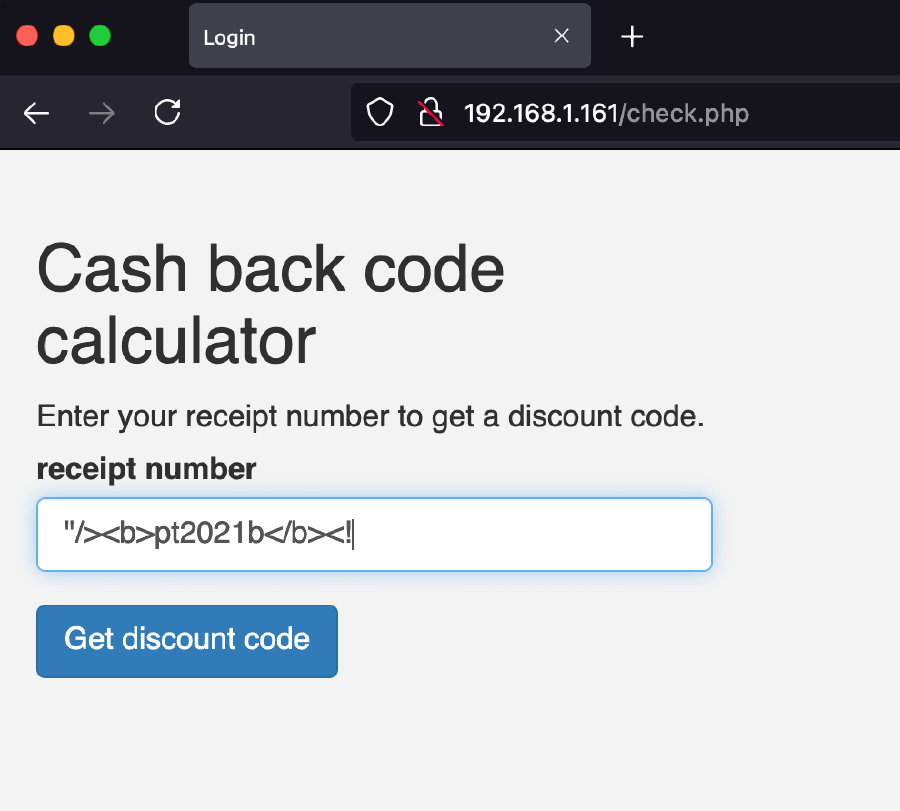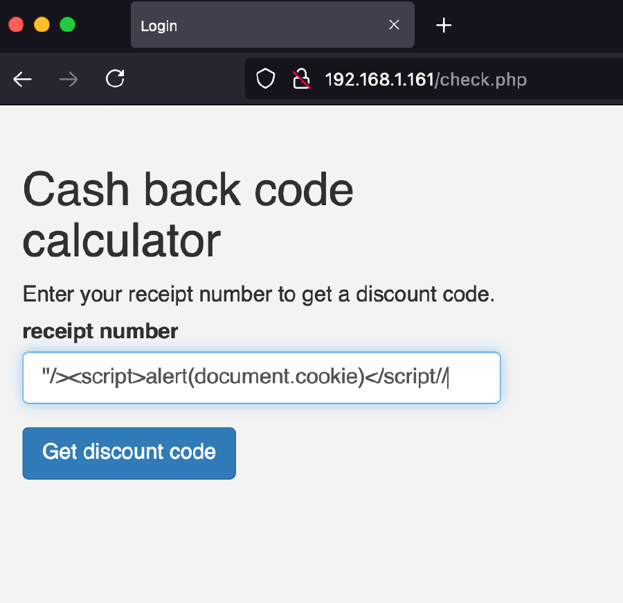 As we have already seen, the input field in discount page is tainted. An attacker can use this field to execute malicious scripts directly in the victim’s web browser. There are two types of XSS vulnerabilities present in this web page: